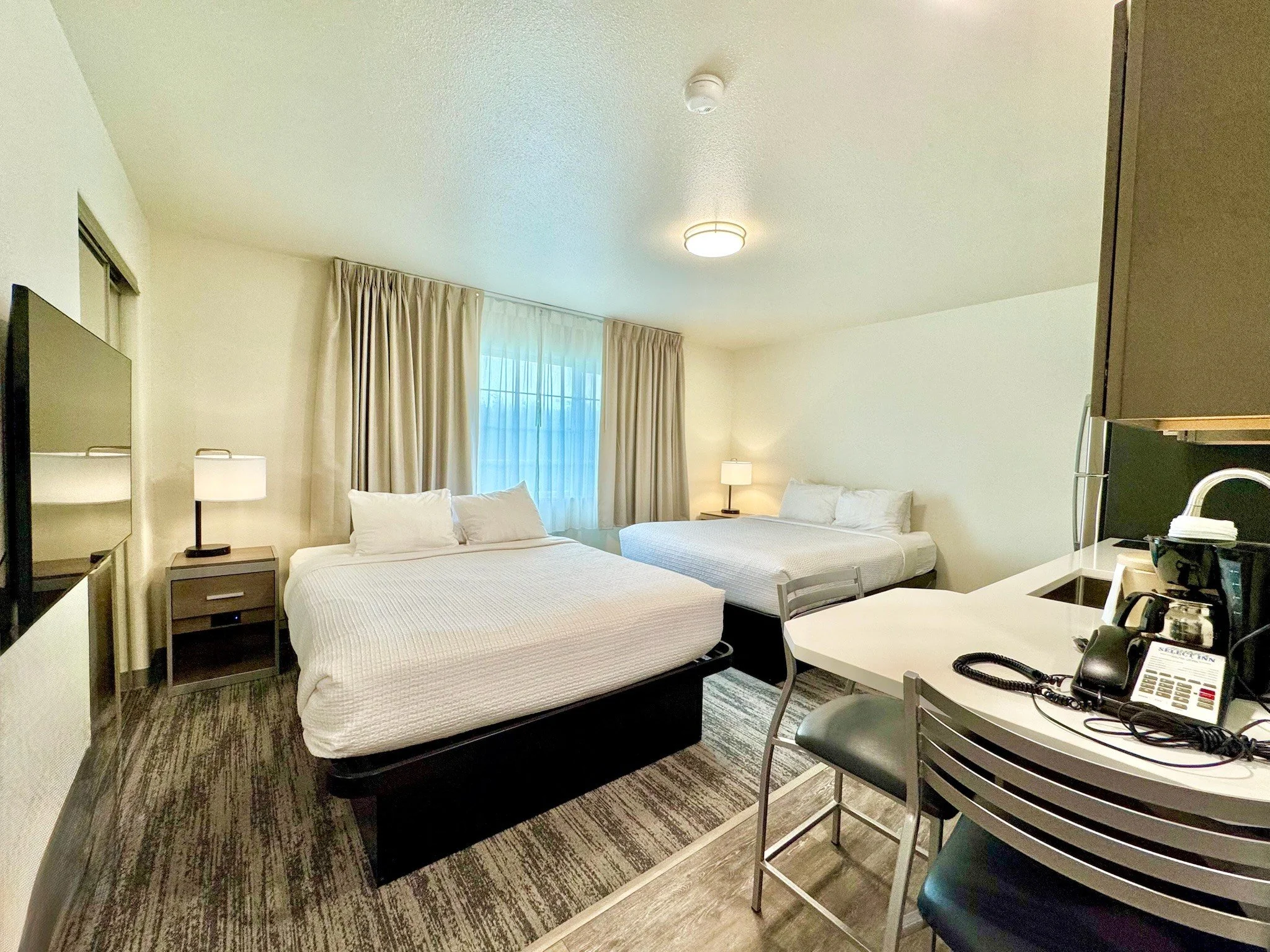 This spacious non-smoking room features 2 queen-sized beds, 37" flat screen HDTV, and an easy to operate alarm clock/radio. The high-speed internet access will help you stay connected while on the road. If you prefer not to eat out you have a fully equipped kitchen to prepare the meal of your choice. You'll also enjoy the convenience of having a coffee maker and iron/ironing board in your room. In the bathroom you'll enjoy fluffy towels, and a curved shower rod that allows more light and space in the shower.